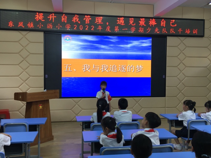 會(huì)議伊始,小瀝小學(xué)大隊(duì)輔導(dǎo)員梁月儀從少先隊(duì)隊(duì)干部應(yīng)具備的素質(zhì)、修養(yǎng)、工作方法等方面進(jìn)行了培訓(xùn),就隊(duì)干部在少先隊(duì)管理中的作用、職責(zé)、義務(wù)等方面進(jìn)行了詳細(xì)的講解,強(qiáng)調(diào)隊(duì)干部要起好模范帶頭作用。聽取梁老師的分享后,隊(duì)干部們紛紛發(fā)表其今后的工作目標(biāo)并分享各自過往切實(shí)可行的做法。最后,黎三妹副校長(zhǎng)對(duì)隊(duì)干部提出了新的要求和希望,強(qiáng)調(diào)少先隊(duì)干部要在學(xué)校管理建設(shè)中發(fā)揮“領(lǐng)”與“導(dǎo)”的作用,履行好自己的職責(zé),用自己的行動(dòng)帶好“頭”,不斷發(fā)揮自己的聰明才智,把工作干得更出色。