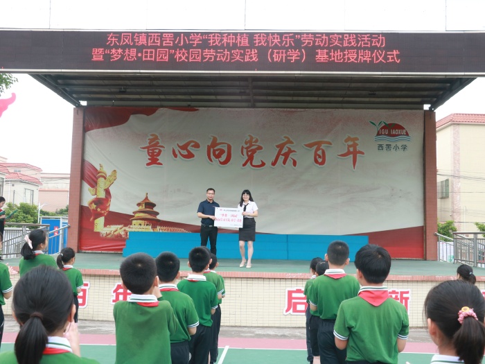 為了培養(yǎng)學(xué)生實(shí)踐能力,在勞動(dòng)中得到鍛煉,同時(shí)獲得勞動(dòng)和收獲的快樂(lè)。2022年4月26日上午,東鳳鎮(zhèn)西罟小學(xué)舉行“‘我種植我快樂(lè)’勞動(dòng)實(shí)踐活動(dòng)暨‘夢(mèng)想·田園’校園勞動(dòng)實(shí)踐(研學(xué))基地授牌儀式”,打造校園勞動(dòng)種植園,供學(xué)生探究種植,讓學(xué)生體驗(yàn)種植的樂(lè)趣。