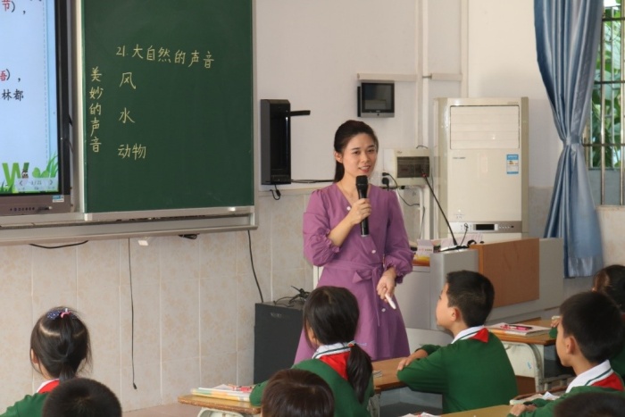 接著,章曉珊老師為我們帶來一節(jié)精彩紛呈的課堂——《大自然的聲音》。章老師牢牢把握課文的語文要素,層層深入,引導學生感受大自然的聲音,注重讀寫結合。