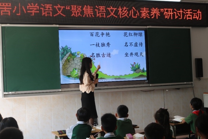 首先由張文娜老師執(zhí)教《坐井觀天》。課堂上,張老師通過展示圖片、聯(lián)系生活實際,有效引導學生領悟生字詞的音形義。