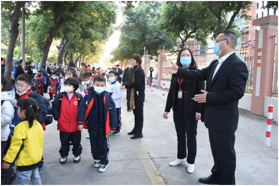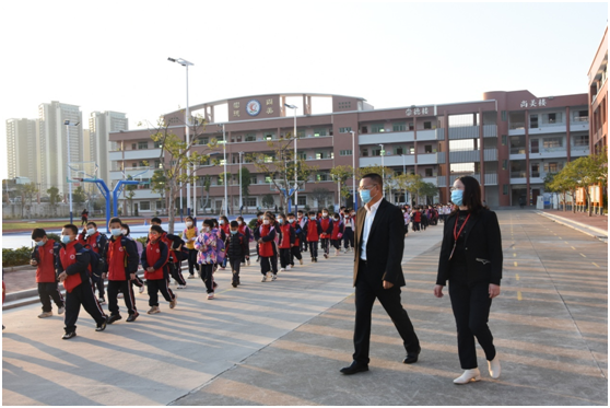 隨后,熊小潮對學(xué)校放學(xué)情況進(jìn)行了重點考察,對學(xué)校學(xué)生放學(xué)行徑的清晰明確、值日教師的盡職盡責(zé)、學(xué)生列隊的整齊有序給予了充分的肯定。熊小潮還強(qiáng)調(diào),在面臨較大交通壓力的情況下,更要加強(qiáng)校園放學(xué)安全管理,全面保障師生的安全。