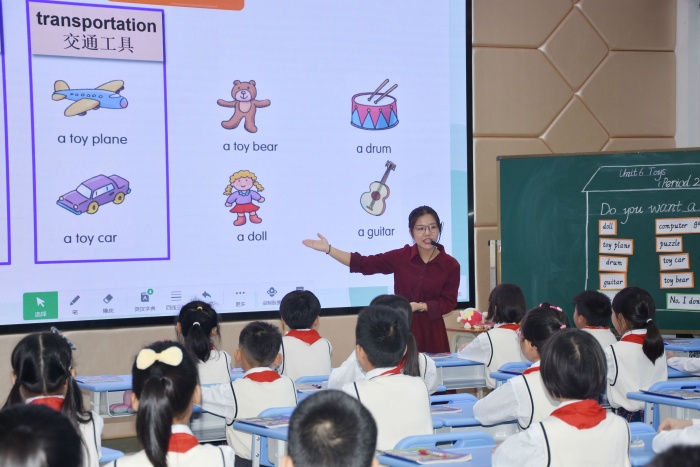 本次活動首先觀摩兩位新老師的課例。第一節(jié)現(xiàn)場展示課由安樂小學的廖文瑤老師授課,內(nèi)容為廣東開心版四年級上冊Unit6 Toys的故事教學。在課堂中廖老師以游戲引入,語音語調(diào)生動自然,發(fā)揮了教師的主導作用,學生在展示環(huán)節(jié)中表現(xiàn)得落落大方,課堂效果顯著。第二節(jié)現(xiàn)場展示課由中心小學的林觀清老師授課,內(nèi)容為廣東開心版四年級上冊Unit6 Toys的詞匯教學。林老師教學風格親切自然,基本功扎實,以輕松活潑的方式組織教學,充分調(diào)動了學生學習的積極性,同時注重培養(yǎng)學生對語言的運用,讓學生在小組活動中通過分享自己的玩具來習得語言。