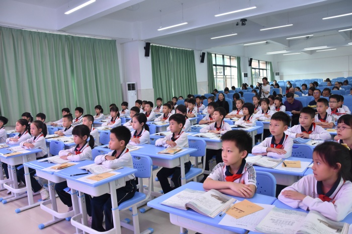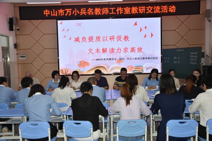 為落實(shí)“雙減”政策,提升教師專業(yè)素養(yǎng),提高教師文本解讀力,打造高效課堂,10月14日下午,在東鳳鎮(zhèn)中心小學(xué)舉行了東鳳鎮(zhèn)中心小學(xué)、安樂小學(xué)、同安小學(xué)語文“三校聯(lián)研”教學(xué)研討活動(dòng)。本次活動(dòng)特邀中山市語文名教師萬小兵蒞臨現(xiàn)場(chǎng)指導(dǎo),東鳳鎮(zhèn)中心小學(xué)胡小明校長(zhǎng)、安樂小學(xué)的嚴(yán)婧副校長(zhǎng)、三所學(xué)校的語文老師們參加了本次活動(dòng)?! ?/p>