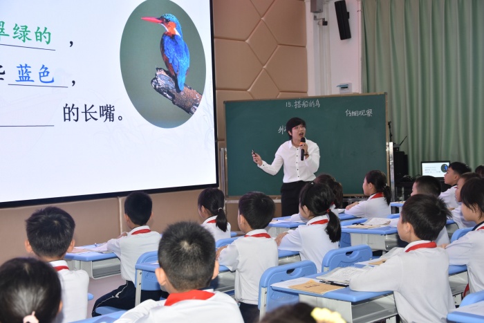 活動(dòng)分為三大環(huán)節(jié),第一環(huán)節(jié)是課例展示。由東鳳鎮(zhèn)中心小學(xué)陳碧娟老師帶來三年級(jí)上冊(cè)課例《搭船的鳥》。陳老師先引導(dǎo)學(xué)生整體把握課文內(nèi)容,學(xué)生通過多層次的朗讀、交流,清楚地知道了作者對(duì)雨點(diǎn)、船夫、翠鳥外形、翠鳥捕魚等作了細(xì)致的觀察。然后通過抓翠鳥捕魚的動(dòng)詞,想象翠鳥捕魚的情景,突破了本節(jié)課的學(xué)習(xí)重難點(diǎn)。最后結(jié)合課外觀察實(shí)踐活動(dòng),讓學(xué)生觀察我們常見的小動(dòng)物,記錄觀察所得,為單元習(xí)作做準(zhǔn)備。