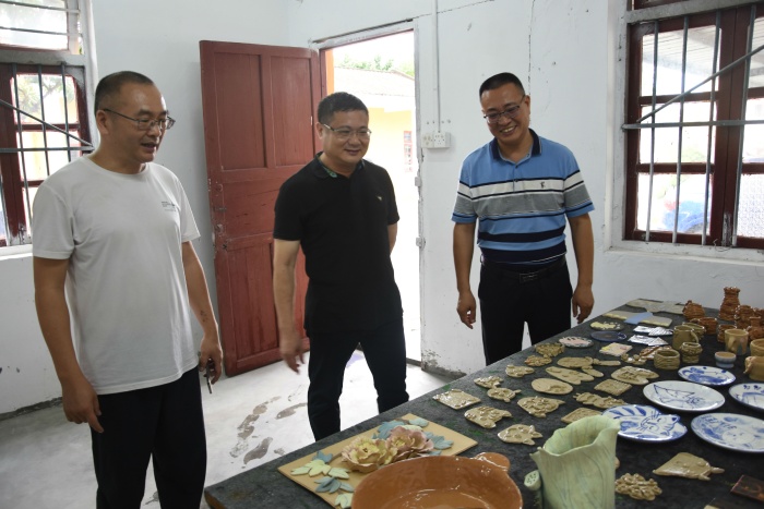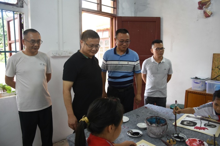 駱培華、李軍在胡小明校長等行政的陪同下,參觀了書法、水墨、陶藝等藝術(shù)社團(tuán)的活動(dòng)現(xiàn)場,胡小明向兩位主席詳細(xì)介紹了學(xué)校藝術(shù)社團(tuán)的人員配備、訓(xùn)練情況等,并對(duì)學(xué)校的發(fā)展規(guī)劃作了詳細(xì)的介紹。駱培華對(duì)學(xué)校藝術(shù)社團(tuán)的管理和多年來取得的藝術(shù)成果給予了充分的肯定,并對(duì)學(xué)校今后各項(xiàng)工作的開展提出四點(diǎn)建議:一是要在現(xiàn)有藝術(shù)成果的基礎(chǔ)上總結(jié)經(jīng)驗(yàn),尋求更大突破。二是要繼續(xù)加強(qiáng)藝術(shù)教育在人才培養(yǎng)中的作用。三是要加強(qiáng)師資隊(duì)伍的建設(shè),搭建教師發(fā)展平臺(tái)。四是要按照學(xué)校的要求進(jìn)一步規(guī)范部門管理,建章立制。最后,專家們與藝術(shù)科的教師進(jìn)行了互動(dòng)交流,重點(diǎn)交流了書法藝術(shù)的心得,分享了多年的創(chuàng)作歷程,讓東鳳鎮(zhèn)中心小學(xué)的藝術(shù)老師受益匪淺。