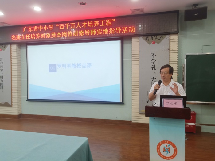 羅明星教授充分肯定莫杰老師的研修匯報并對莫老師多年來只集中做一件事,建設(shè)一個促進學生和老師共同成長的班給予高度評價和贊賞,并為莫杰名班主任研修活動、班主任工作室、班級建設(shè)的未來發(fā)展與定位以及拓展指明了進一步成長的方向。鼓勵莫老師做好研究工作,在三年內(nèi)提升學術(shù)研究水平,把實踐凝練成理論,積極申報課題,創(chuàng)建校本特色班集體,發(fā)揮示范輻射作用,立足本校,帶動周邊,輻射省內(nèi)外。