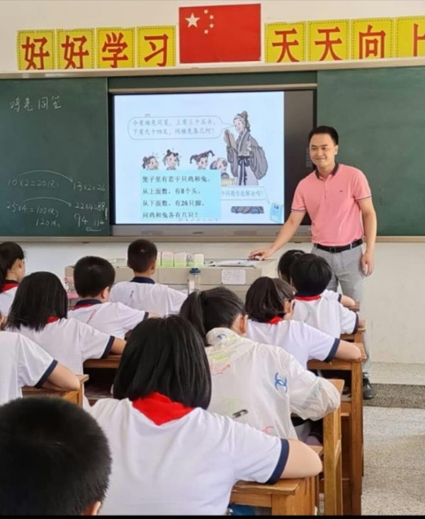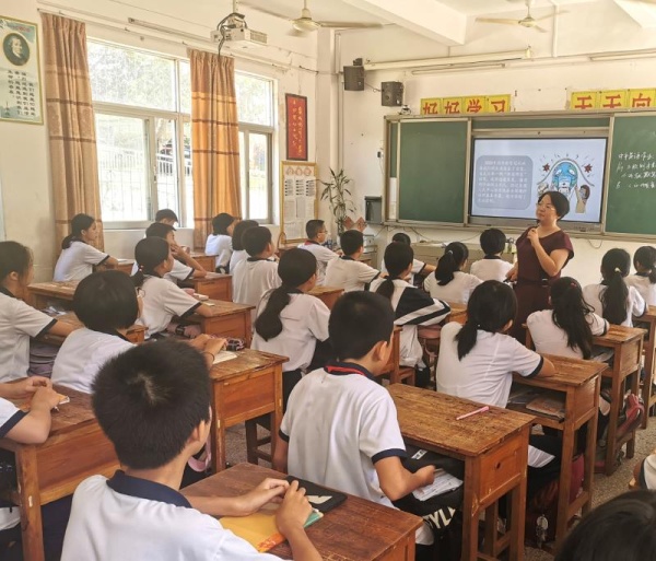 隨后,水云軒小學(xué)參與送課的骨干教師們分別上課。曾文珍書記給六年級孩子帶來勵志向上的主題班會課《從小學(xué)先鋒,長大做先鋒》。黃偉勤主任和五年級的孩子們一起走進活躍生動的課堂《Who's making the noise?》;黎洪基老師帶給四年級孩子們精彩有趣的數(shù)學(xué)課《雞兔同籠》;王美老師和三年級的孩子們開啟了魔法繪本課之旅《驢小弟變石頭》。課后,水云軒小學(xué)送課老師們與浮濱鎮(zhèn)各科老師們圍繞課堂和兩地教學(xué)資源情況開展了熱烈的探討和交流活動。
