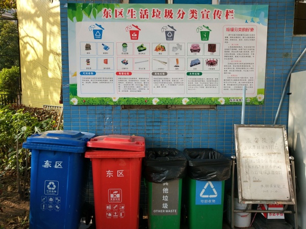 為了使垃圾分類(lèi)工作落到實(shí)處,實(shí)現(xiàn)校園生活垃圾分類(lèi)全覆蓋。東區(qū)水云軒小學(xué)的校園內(nèi)添置了多組標(biāo)志清晰的垃圾分類(lèi)回收箱,并根據(jù)不同需要放置在校園走道、班級(jí)教室和教師辦公室,指引學(xué)校師生正確分類(lèi)投放垃圾,對(duì)可回收物、有害垃圾、其他垃圾分三類(lèi)進(jìn)行回收。此外,特殊時(shí)期為保障師生生命健康,學(xué)校在教學(xué)樓的每個(gè)樓層設(shè)置了專(zhuān)門(mén)收集廢棄口罩的垃圾箱,對(duì)廢棄口罩進(jìn)行集中科學(xué)處理。在復(fù)學(xué)第一天,學(xué)校就通過(guò)釘釘直播科學(xué)防疫衛(wèi)生健康課程,教導(dǎo)學(xué)生們正確處理和回收廢棄的醫(yī)用口罩,將垃圾分類(lèi)回收落實(shí)到學(xué)校常規(guī)工作中。