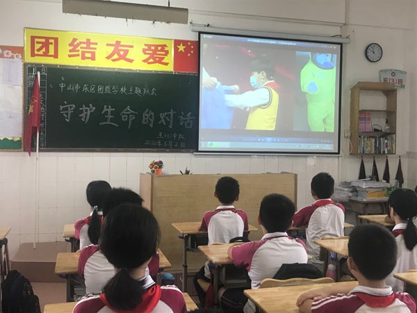 6月2日上午,團(tuán)益學(xué)校組織學(xué)生觀看“守護(hù)生命的對(duì)話”——少先隊(duì)“云隊(duì)課”活動(dòng)視頻,向最美逆行者致敬。