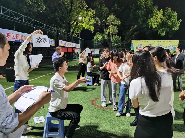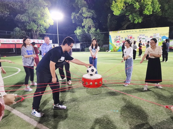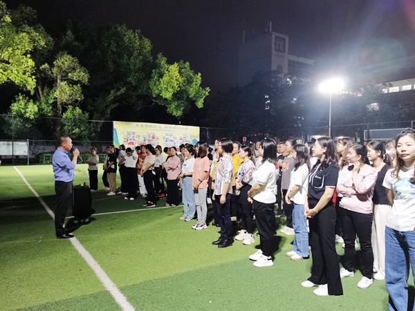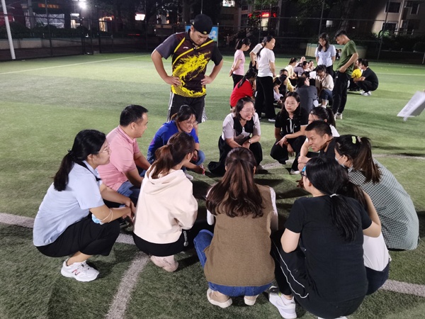 為增強(qiáng)全體教職工的凝聚力、戰(zhàn)斗力,建設(shè)和諧、合作團(tuán)隊(duì),創(chuàng)建文明校園,彰顯工會(huì)組織在學(xué)校發(fā)展中的協(xié)調(diào)、促進(jìn)作用,培養(yǎng)全體教職員工良好的歸屬感、幸福感,2022年11月16日晚上,團(tuán)益學(xué)校組織全體教師在學(xué)校足球場(chǎng)開展團(tuán)康活動(dòng)。本次活動(dòng)由學(xué)校工會(huì)委員會(huì)組織,由心理健康老師戴婉柔老師主持。