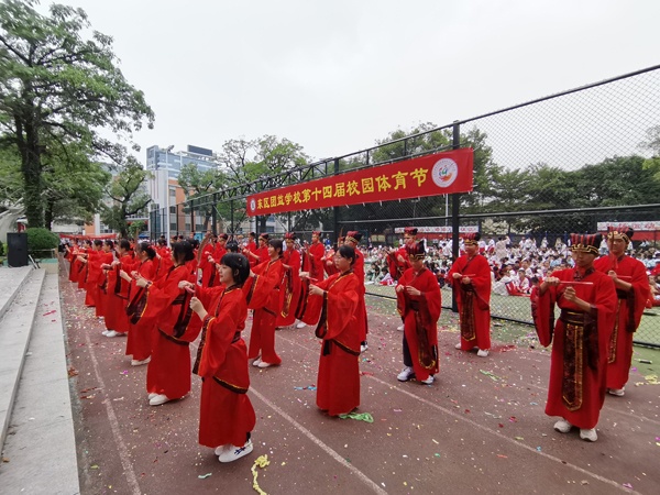 2022年11月17日,在這個(gè)秋高氣爽,丹桂飄香的日子里,團(tuán)益學(xué)校迎來(lái)了一年一度的盛會(huì)——第十四屆校園體育節(jié)開幕式。開幕式在學(xué)校運(yùn)動(dòng)場(chǎng)舉行,全體師生盛裝出席,相聚一堂,載歌載舞共慶盛會(huì)。出席活動(dòng)的除了學(xué)校全體師生外,還有集團(tuán)特聘教學(xué)顧問(wèn)楊秋香老師、周植慈老師、謝文靜老師和孫愛平老師。