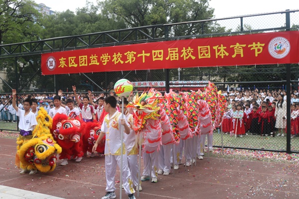 最后,李練君校長(zhǎng)宣布團(tuán)益學(xué)校第十四屆體育節(jié)正式開幕,學(xué)校興趣班的同學(xué)也不甘示弱,龍獅班、籃球班、舞蹈班、啦啦操班、武術(shù)班紛紛上臺(tái)表演,為本次開幕式助興。