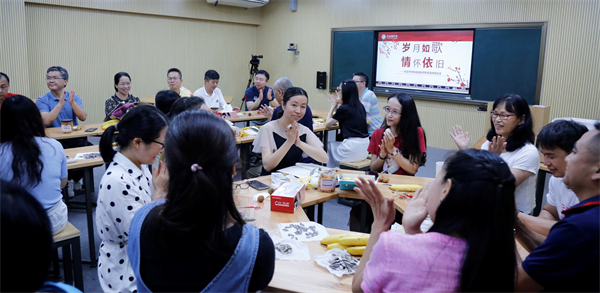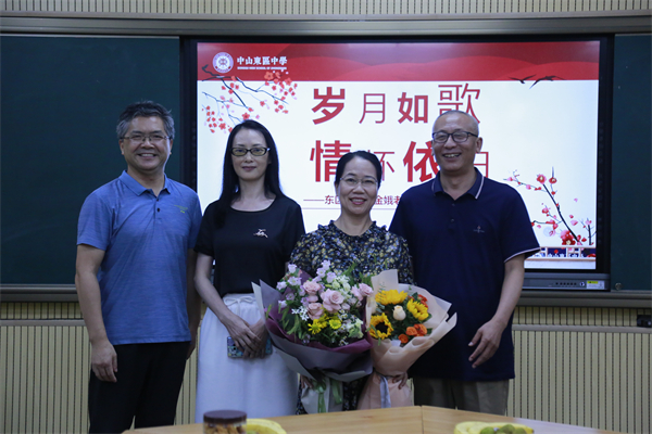 接著,播放了科組制作的短片“歲月如歌,情懷依舊”,再次回顧楊金娥老師投身教育事業(yè)的精彩人生,也表達(dá)了我們對(duì)楊金娥老師退休生活的美好祝愿。