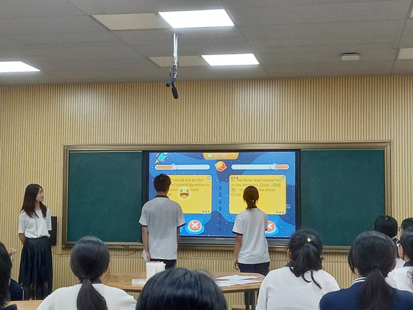楊婷婷老師以必修三Unit 5 Grammar情態(tài)動詞為教學內容,向我們展示了一節(jié)內容充實、節(jié)奏流暢,互動性強,邏輯性強的語法課,便于學生內化與吸收;劉春江老師以必修三U4 reading and thinking為教學內容,向我們展示了一節(jié)緊貼課文、貼近學生實際的閱讀課;孟希桐老師以期末作文復習為主題,以本學期寫過的、背誦過的作文為基礎,為同學們總結歸納了日語寫作的基本類型,并在課上引導學生找出作文里面精彩語句,并鼓勵學生學會應用在自己的作文中;馮燕老師以選擇性必修一U1 Reading為教學內容,緊密結合單元主題People of achievement,以鐘南山院士的事跡為導入,講述了諾貝爾獎得主屠呦呦發(fā)現(xiàn)青蒿素的過程,使學生們增強了不畏困難、永不放棄的意識;廖哲老師以Book?3?Unit4?課外拓展閱讀What if we spun the other way為主題,向我們展示了一節(jié)英語+地理的跨學科融合初探課程,以“如果地球自轉方向相反,我們的世界現(xiàn)在會是什么樣子的”的問題為導入,激發(fā)學生閱讀文章的積極性,課后仍有部分同學關于這個問題進行著激烈的討論。