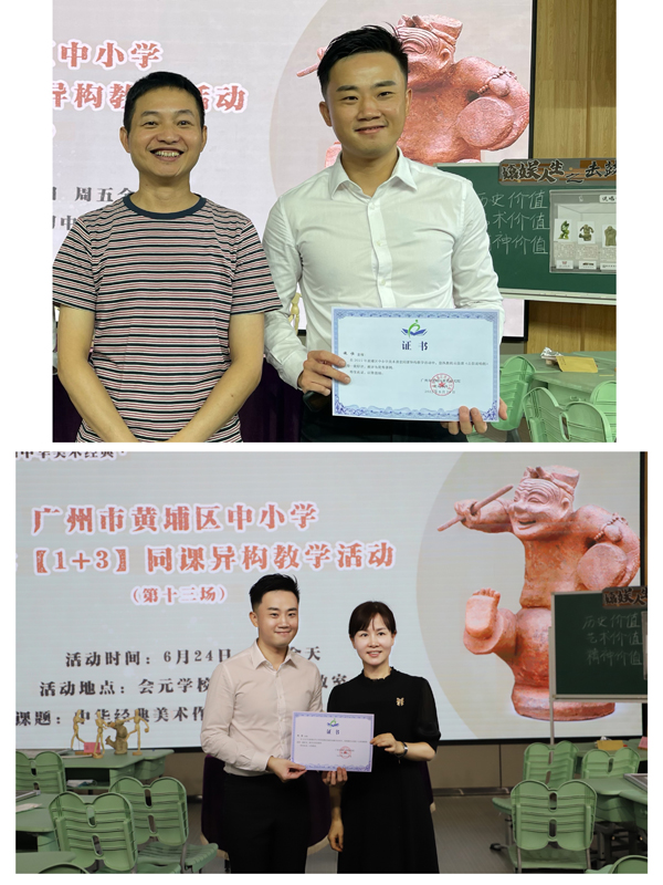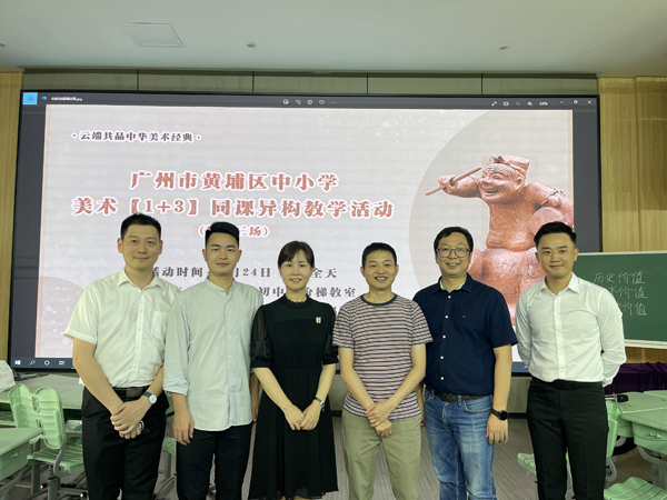 2022年6月24日,《中華美術(shù)經(jīng)典鑒賞》“骨干帶新秀”同課異構(gòu)教學(xué)比賽活動(dòng)(第十三場(chǎng))在廣州市黃埔區(qū)會(huì)元學(xué)校順利舉行。中山市東區(qū)中學(xué)施恒老師受邀代表中山骨干教師與廣州黃埔區(qū)三位優(yōu)秀教師同課異構(gòu)并進(jìn)行教研交流。本次活動(dòng)由黃埔區(qū)中小學(xué)美術(shù)教研員、區(qū)教研會(huì)會(huì)長(zhǎng)高旦老師組織開(kāi)展,廣東省美術(shù)教研員鐘國(guó)榮老師、中山市東區(qū)街道藝術(shù)專(zhuān)干趙海賓老師、中山市小欖鎮(zhèn)傳統(tǒng)文化中心組郝同超老師與黃埔區(qū)中小學(xué)美術(shù)教師代表到場(chǎng)觀摩?;顒?dòng)采取線(xiàn)上回播、線(xiàn)下相結(jié)合的形式開(kāi)展,為無(wú)法到場(chǎng)的老師們提供了有效觀課渠道。