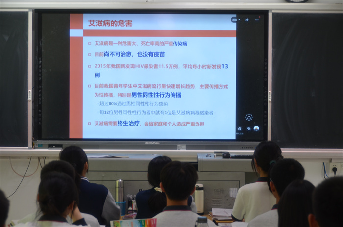 講座開(kāi)始,來(lái)副所長(zhǎng)以一個(gè)通關(guān)小游戲激起了學(xué)生們的學(xué)習(xí)欲望,留下小懸念。以小王的故事,讓同學(xué)們對(duì)艾滋病有了進(jìn)一步了解。接下來(lái),來(lái)副所長(zhǎng)深入淺出地講解了艾滋病的危害、艾滋病的主要傳播途徑、艾滋病病毒的特點(diǎn)等相關(guān)知識(shí),用生動(dòng)的事例讓學(xué)生們深刻的了解了艾滋病的危害,了解了有效防治艾滋病的具體措施以及發(fā)生高危行為后的應(yīng)對(duì)方法(如必要時(shí)可采用藥物阻斷、早發(fā)現(xiàn)、早診斷),講者講得認(rèn)真,聽(tīng)者聽(tīng)得專(zhuān)注。