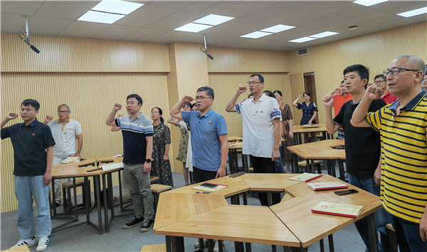黨課之后,第二黨支部全體黨員重溫入黨誓詞?!拔抑驹讣尤胫袊?guó)共產(chǎn)黨,擁護(hù)黨的綱領(lǐng),遵守黨的章程,履行黨員義務(wù)……”在葉雋書記的帶領(lǐng)下,全體黨支部成員舉起右拳,面向黨旗莊嚴(yán)宣誓,重溫入黨初心。莊重神圣的誓詞,鏗鏘有力的宣誓聲,強(qiáng)烈震撼著每一位黨員。錚錚的誓言,不變的初心,體現(xiàn)了全體黨員對(duì)中國(guó)共產(chǎn)黨的無限忠誠(chéng)與熱愛。