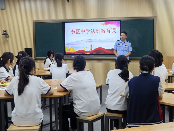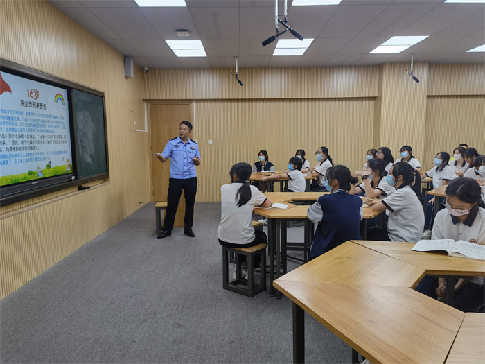 綠樹蔭濃夏日長,法治安全需常談。為進(jìn)一步增強(qiáng)學(xué)生的法治安全意識(shí),提高學(xué)生遵守法律法規(guī)的自覺性,同時(shí)預(yù)防未成年人犯罪,全力保證學(xué)生的生命安全,努力創(chuàng)建文明、和諧、平安的校園環(huán)境。2022年7月6日,中山市東區(qū)中學(xué)攜手紫馬嶺派出所為全體同學(xué)開展法治教育講座,本次講座由德育處蔡昌盛主任主持,紫馬嶺派出所張啟程副所長主講。