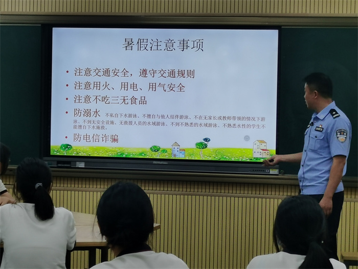 講座的最后,張啟程副所長提醒同學(xué)們在暑假期間要注意交通安全,遵守交通規(guī)則;注意用火、用電、用氣安全;不吃三無食品;防溺水 ;要時(shí)刻防電信詐騙。同學(xué)們表示張警官為我們的暑假給出了很好的建議和要求,特別是防溺水、防電信詐騙等,紛紛表示要把張警官的建議牢記于心。
