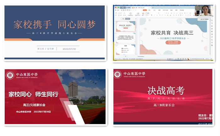 家校攜手,決戰(zhàn)高三。2022年7月31日晚7點30分,中山市東區(qū)中學(xué)2023屆高三舉行了“家校攜手共進 助力夢想前行”為主題的線上家長會。