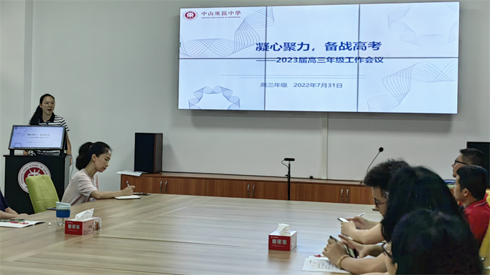 2022年7月31日上午,中山市東區(qū)中學2023屆高三年級在學校信息中心舉行了新學年高三年級工作會議。此次會議由符曉主任主持,謝柏芳校長、馬榮林副校長、高宏副校長、高三年級落級行政以及全體高三教師參與。此次會議的重要性不言而喻,旨在調(diào)動全體高三教師的工作積極性,明確努力的方向和肩上所承擔的責任。