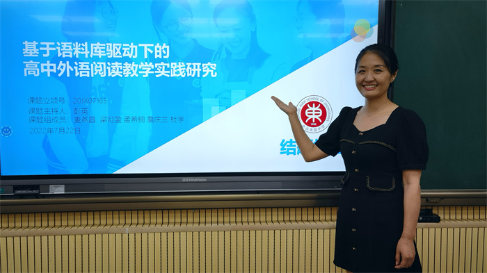 彭英老師對(duì)課題《基于語(yǔ)料庫(kù)驅(qū)動(dòng)下的高中外語(yǔ)閱讀教學(xué)實(shí)踐研究》進(jìn)行陳述。她指出課題的研究結(jié)果表明,語(yǔ)料庫(kù)信息技術(shù)支持下的外語(yǔ)閱讀教學(xué)有利于培養(yǎng)學(xué)生閱讀微技能、提升閱讀素養(yǎng)、分析性思維能力和自主閱讀能力。并促進(jìn)學(xué)生的自主探究能力、小組合作能力和英語(yǔ)學(xué)習(xí)效果。同時(shí)也展示了在全體課題組成員的努力下課題組研究的殷實(shí)成果。最后,彭老師還對(duì)課題研究中出現(xiàn)了問題進(jìn)行了反思和展望,并提出了基于課題支撐基礎(chǔ)與深度研究的新的課題研究的思考。緊接著課題組成員孟希桐老師向全體專家評(píng)委做了課題成果和校本資源電子材料的展示。