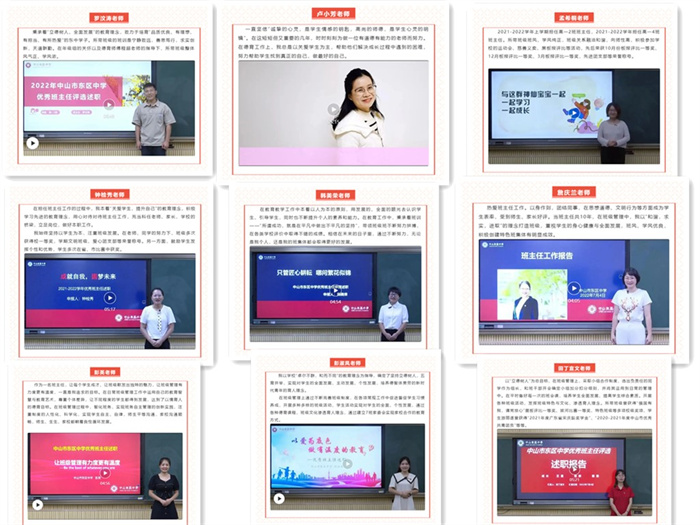 本次評選活動通過個人申報、年級審核,共推選12名優(yōu)秀班主任參加評選。12名優(yōu)秀班主任候選人精心錄制了個人述職視頻,通過一系列班級管理經(jīng)驗的分享,展示了自己在育人理念和成績,抒發(fā)了對班主任工作的熱愛,彰顯了對教育事業(yè)的飽滿熱情,展現(xiàn)出了東中人踔厲奮發(fā)、昂揚向上的精神風貌。