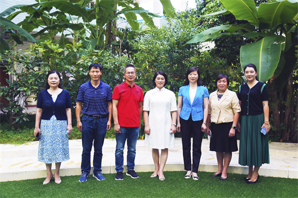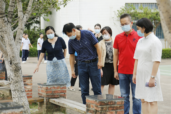 在學(xué)校領(lǐng)導(dǎo)班子的陪同下,馮金怡副主席一行沿著校道實(shí)地查看了學(xué)校設(shè)施環(huán)境。在學(xué)校庭院的芭蕉樹下,馮副主席饒有興致地介紹道:這是大蕉,那是粉蕉,遠(yuǎn)處的是皇帝蕉……她表示,想不到學(xué)校在這么小的空間里,栽種了富有當(dāng)?shù)厣顨庀⒌墓麡浜椭参?,讓孩子們可以在下課之余放飛心靈,尋求精神慰藉,這是很好的教育設(shè)計(jì)。