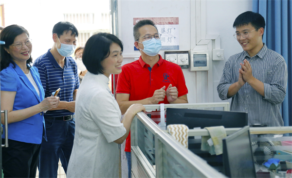 巡視校園期間,馮金怡副主席還聽取了謝柏芳校長關(guān)于學(xué)校辦學(xué)情況的匯報(bào)。謝校長向市、局領(lǐng)導(dǎo)介紹了學(xué)校的基本情況以及學(xué)校發(fā)展存在的難點(diǎn)和焦點(diǎn)問題。馮金怡副主席對學(xué)校的創(chuàng)新發(fā)展理念和近年來取得的進(jìn)步給予了高度肯定,她說:“學(xué)校雖小,但很精致,很有內(nèi)涵,東區(qū)中學(xué)為中山孩子們做出了很大的努力?!贬槍W(xué)校發(fā)展中遇到的困難,特別是學(xué)生宿舍、功能場室不足等問題,她表示,將進(jìn)一步深入調(diào)研了解情況,積極同各級領(lǐng)導(dǎo)和相關(guān)部門認(rèn)真研討,努力推動落實(shí)解決。她勉勵學(xué)校領(lǐng)導(dǎo)班子,教師是學(xué)校發(fā)展的第一資源,要切實(shí)關(guān)心、關(guān)愛教師,在有限的條件下,努力探索為教師創(chuàng)造良好的工作、學(xué)習(xí)和生活條件,讓教師安心從教、潛心育人,推動學(xué)校教育教學(xué)質(zhì)量再上新臺階。