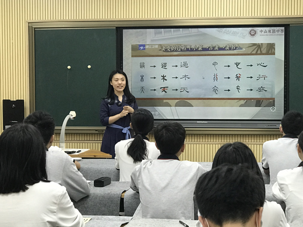 隨后,楊麗媛老師從學(xué)生學(xué)情、難點(diǎn)突破、教學(xué)過(guò)程等方面,對(duì)本節(jié)傳統(tǒng)文化展示課的教學(xué)思路做以分享。教研員林曉潔老師對(duì)楊老師的課進(jìn)行了深入點(diǎn)評(píng),并提出如果能夠增加隸變過(guò)程中,書寫工具的變化,則不僅能讓學(xué)生知其然,更知其所以然。林曉潔老師專業(yè)的點(diǎn)評(píng)和指導(dǎo)也為東區(qū)中學(xué)以后的中華優(yōu)秀傳統(tǒng)文化教育工作指出了方向。