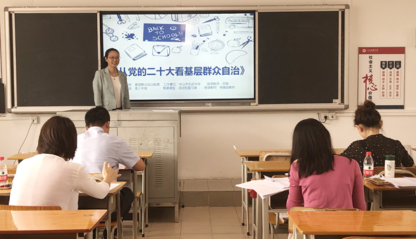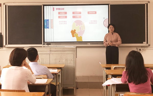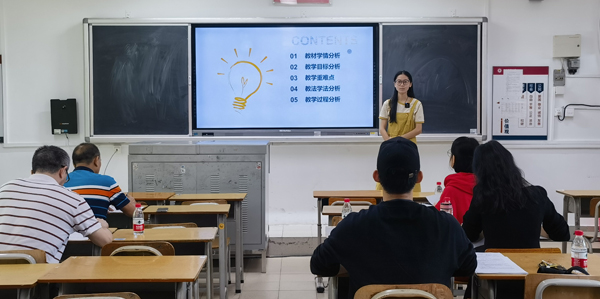 11月16日,大賽的第二階段——課堂教學(xué)比賽正式拉開帷幕。此次比賽,四個賽場同時亮劍,高手過招,精彩紛呈。比賽的教師精神飽滿,立足本學(xué)科特點(diǎn)進(jìn)行教學(xué),教學(xué)過程條理清晰,使用信息技術(shù)助力教學(xué)效果提升,展示了較強(qiáng)的教學(xué)能力。符曉老師執(zhí)教的《從黨的二十大看基層群眾自治》,深入淺出,非常符合高三學(xué)生復(fù)習(xí)備考的學(xué)情;程超老師執(zhí)教的《老人與?!罚瑢訉釉O(shè)問,問題設(shè)置很有梯度,啟發(fā)性強(qiáng),教師點(diǎn)評精準(zhǔn)及時;盧小芳老師執(zhí)教的《將進(jìn)酒》,課堂文化氣息濃厚,板書設(shè)計有創(chuàng)意,學(xué)生參與度高,學(xué)生朗讀特別精彩;梁婧怡老師條理清晰,循循善誘,將“冪函數(shù)”的知識化繁為簡;陳安琪老師執(zhí)教的《鐵鹽與亞鐵鹽》,既有有趣味的實(shí)驗,又有理論的高度,雖是一名新教師,卻對課堂駕輕就熟;孟希桐老師執(zhí)教的《健康的な學(xué)校生活》,情境真實(shí),貼近學(xué)生生活,學(xué)生的參與度高;史雪嬌老師執(zhí)教的《厄爾尼諾和拉尼娜現(xiàn)象及其對地理環(huán)境的影響》,對考點(diǎn)把握精準(zhǔn),符合高三備考學(xué)情;曾馨璇執(zhí)教的《牛頓第一定律》,教學(xué)目標(biāo)清晰,注重提升學(xué)生素養(yǎng);葉雋老師執(zhí)教的《冪函數(shù)》思路清晰,信息技術(shù)運(yùn)用得恰到好處;羅汶濤老師執(zhí)教的《酶的作用與本質(zhì)》,選題精準(zhǔn),教師授課語言充滿激情;楊婷婷老師執(zhí)教的《選必二Unit3 Reading and Writing》,讀寫結(jié)合,對學(xué)生能力的提升落實(shí)非常到位;張昱老師執(zhí)教的《統(tǒng)一多民族國家的形成》,思路清晰,教師駕馭課堂的能力強(qiáng);馮璽翀老師執(zhí)教的《軟式棒壘球-進(jìn)攻戰(zhàn)術(shù)》,師生互動精彩,盡展教師個人魅力;楊麗媛老師執(zhí)教的《隸書源流與賞析》,巧妙講述中國文化,在潛移默化中培養(yǎng)學(xué)生的文化自信;黃福貴老師執(zhí)教的《如何鑒賞美術(shù)作品》,格調(diào)高雅,理論素養(yǎng)高……十五堂課,堂堂精彩,展現(xiàn)了他們扎實(shí)的教學(xué)基本功,彰顯了我校青年教師在專業(yè)發(fā)展之路上的探索和思考。