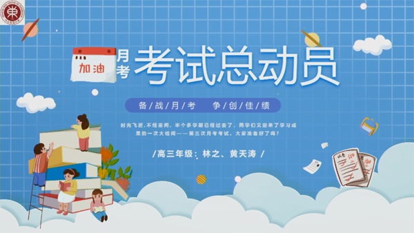 在距離2023年高考200天之際,為強化高三備考沖刺意識,鼓舞高三師生士氣,瞄準目標,闊步前行,高三年級于11月19日第九節(jié)課借助釘釘平臺召開主題為《備戰(zhàn)月考,爭創(chuàng)佳績》月考動員大會。會議由年級主任林之老師主持,學校領導,全體高三師生認真聆聽了本次會議。
