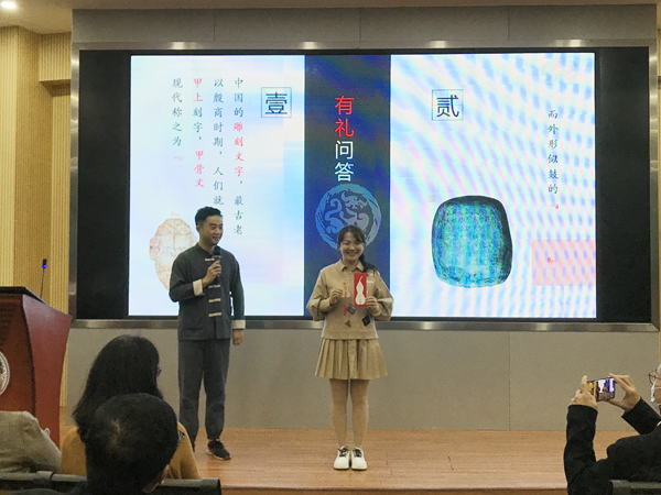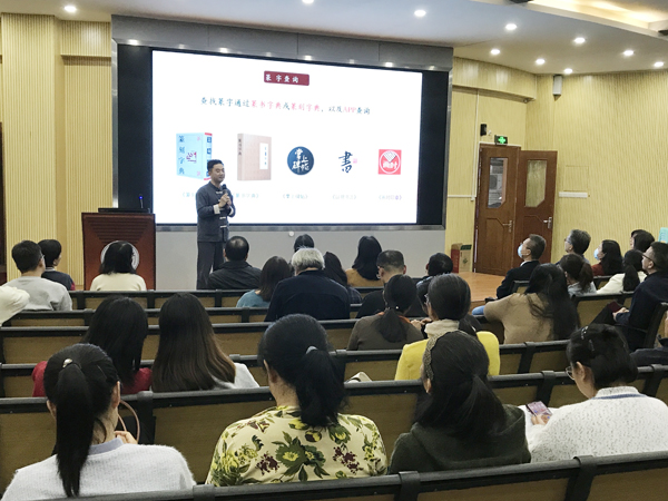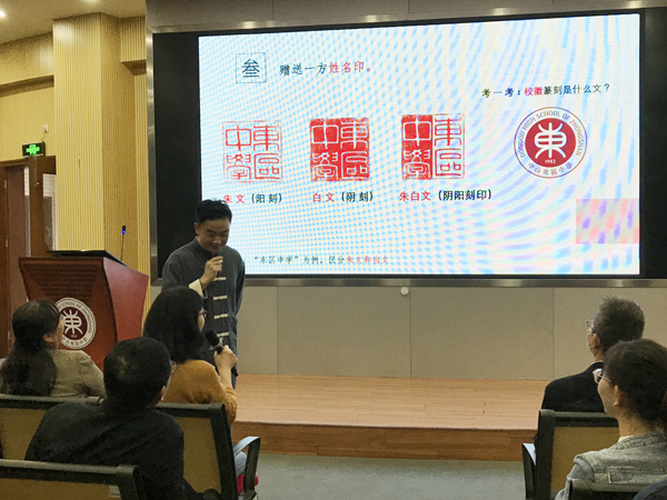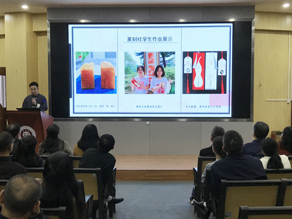本次校本培訓(xùn)由我校中華優(yōu)秀傳統(tǒng)文化中心教研組施恒老師主講,培訓(xùn)主題為篆刻藝術(shù)專題《方寸之間精雕細(xì)琢》。講座分四個主要內(nèi)容,分別為篆刻的起源、應(yīng)用、推廣以及最后的互動。施老師通過2008年北京奧運(yùn)會”中國印”和2022年北京冬奧會“會跳舞”的運(yùn)動圖標(biāo)導(dǎo)入培訓(xùn)主題,詳細(xì)解讀并現(xiàn)場示范了如何熟練運(yùn)用篆刻的形式、篆法與刀法,他通過結(jié)合我校特有的篆刻校園文化,分享了我校近五年的篆刻文化畢業(yè)衫掠影,為大家?guī)砹艘粓錾鷦佑腥?、?nèi)涵豐富、實(shí)用性強(qiáng)的文化大餐,同時也展示了我校兩位同學(xué)在省教廳印跡中國比賽中分別取得省二、三等獎并代表廣東省參加教育部國賽的參賽作品。講座的最后,施恒老師和全校老師們進(jìn)行了更為深入的互動問答,也將學(xué)生們親手制作的許愿牌及書簽贈與了現(xiàn)場老師。