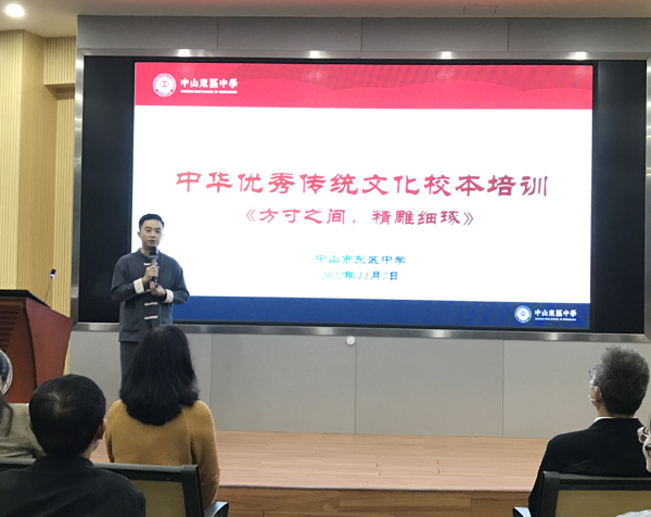 2022年11月7日下午,中山市東區(qū)中學(xué)中華優(yōu)秀傳統(tǒng)文化中心教研組在報(bào)告廳面向全體教師開展了一場別開生面的校本培訓(xùn)。