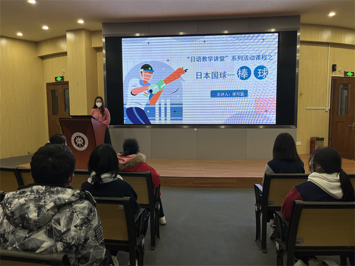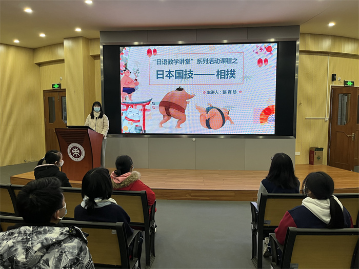 此外,為豐富校園文化生活,發(fā)掘?qū)W生課外興趣,打造日語教學(xué)的第二課堂,梁可盈老師和張賽珍老師在會后分別繼續(xù)開展“日語教學(xué)講堂”系列活動課程——棒球文化和相撲文化。梁可盈老師指出,棒球運動是被譽為最講禮儀、最講感恩的運動。棒球精神與中國文化在無形中達成了一種契合。希望大家能夠感悟棒球精神,學(xué)會感恩、守規(guī)矩、講禮貌。張賽珍老師通過有趣的視頻和圖片帶大家走入相撲的世界,帶領(lǐng)大家深入地了解蘊含在相撲背后的體育競技精神。
