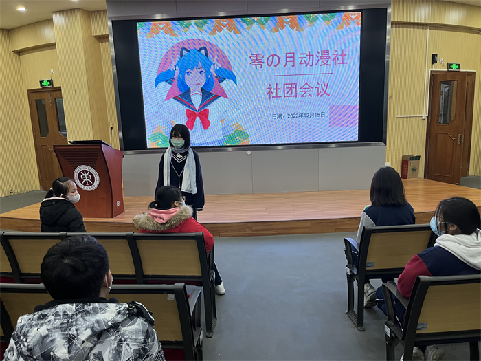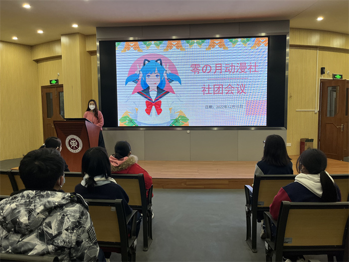 為順利推進元旦晚會節(jié)目的排練工作,引導(dǎo)社團活動走向課程化建設(shè),2022年12月16日,中山市東區(qū)中學(xué)零の月動漫社于學(xué)校報告廳召開社團指導(dǎo)會議暨“日語教學(xué)講堂”系列活動課程。此次會議由社團指導(dǎo)教師梁可盈、張賽珍老師主持,動漫社全體成員參與。