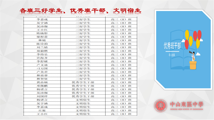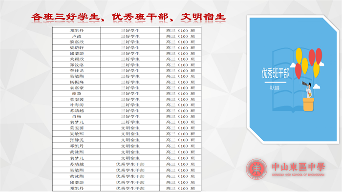 第三,針對本學(xué)期表現(xiàn)優(yōu)秀的學(xué)生進(jìn)行表彰,黃主任對獲獎同學(xué)提出表揚(yáng),并且號召其他同學(xué)向優(yōu)秀的同學(xué)學(xué)習(xí)。