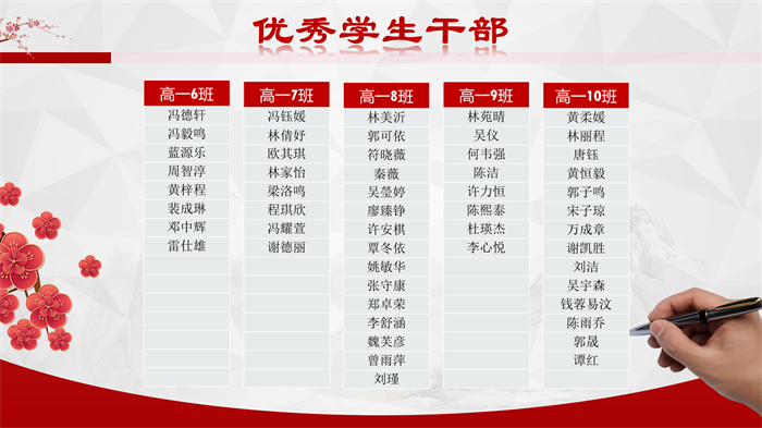 接下來,彭主任對本學(xué)期表現(xiàn)優(yōu)秀的學(xué)生進行表彰,所頒發(fā)的獎項有:校園十佳、優(yōu)秀學(xué)生干部、優(yōu)秀團干部、優(yōu)秀班干部、三好學(xué)生、文明宿生。獲獎學(xué)生們在本學(xué)期展現(xiàn)出了良好的精神面貌,彰顯了榜樣的力量。屏幕另一方的家長和學(xué)生,也都紛紛在釘釘群內(nèi)留言,為獲獎的同學(xué)點贊。