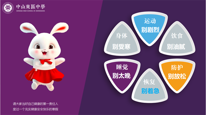 緊接著,彭主任作出了高一學(xué)生的寒假學(xué)習(xí)安排,本次寒假學(xué)生的作業(yè)包括學(xué)科作業(yè)和德育實踐作業(yè),學(xué)科作業(yè)全部通過升學(xué)E網(wǎng)通發(fā)布,德育作業(yè)包含爭當傳承文化的藝術(shù)兔、爭當博覽群書的閱讀兔、爭做學(xué)富五車學(xué)習(xí)兔、爭當熱愛勞動勤勞兔。最后預(yù)祝全體高一年級的師生能共過一個充實、文明、祥和的春節(jié)!