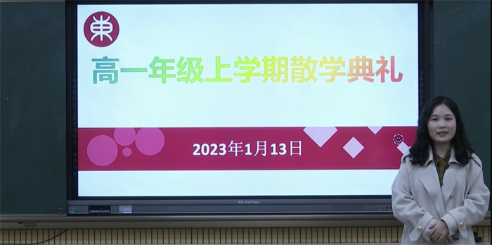 晚上8點整,高一年級全體學(xué)生與家長以及班主任老師們準時守候在線上,等候散學(xué)典禮開始。散學(xué)典禮由年級主任彭淑鳳主持。散學(xué)典禮主要分為四部分。典禮一開始回顧了2022年學(xué)生和班主任們共同學(xué)習(xí)生活的點點滴滴。