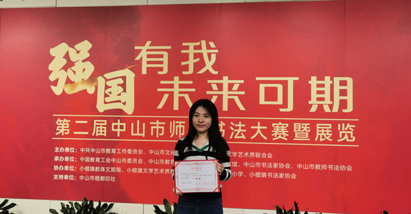 東區(qū)中學師生自接到比賽通知,積極準備,從作品內(nèi)容、形式、書體等方面反復打磨,共提交8份作品,全部獲獎。其中,楊麗媛老師獲教師組一等獎,甘敏華老師獲教師組二等獎;尹晨、劉偉欣同學獲中學甲組一等獎,劉夢熙、鄧希獲中學甲組二等獎,林巧茵、鄭梓嵐獲中學甲組三等獎。