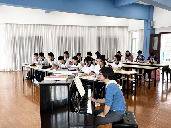 此次教研活動分兩部分進(jìn)行,首先展示了四節(jié)公開課,分別是廖宜老師的《舞蹈劇目與表演》;董薇老師的《學(xué)堂樂歌》;江樂老師的《音樂與人生》;徐卓銳老師的《視唱練耳——節(jié)奏訓(xùn)練》。各位老師精心準(zhǔn)備,從教學(xué)理念到教學(xué)設(shè)計都突出新課標(biāo)的要求,課堂教學(xué)環(huán)環(huán)相扣,內(nèi)容豐富多彩,得到同學(xué)們的喜愛。隨后,全體音樂科組老師進(jìn)行互評,老師們相互對四節(jié)課提出自己的見解及建議,并對新高考下的教學(xué)進(jìn)行了討論。高中音樂教研員張琦老師對我們的常規(guī)教學(xué)給予高度的肯定,從學(xué)生的技能考核上可以看出我們的常規(guī)音樂教學(xué)很扎實,學(xué)生掌握的音樂知識很全面,專業(yè)學(xué)習(xí)的進(jìn)度也是在穩(wěn)步推進(jìn)中。
