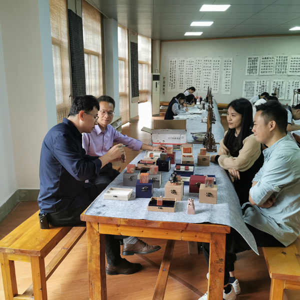 公春江老師對(duì)施恒老師指導(dǎo)的篆刻作品給予高度肯定,為后面篆刻教學(xué)給出專業(yè)性的指導(dǎo)建議,公老師認(rèn)為篆刻要從漢印入手,漸進(jìn)到先秦印,如何“畫(huà)稿”、如何“上石”,最終形成成熟的作品。
