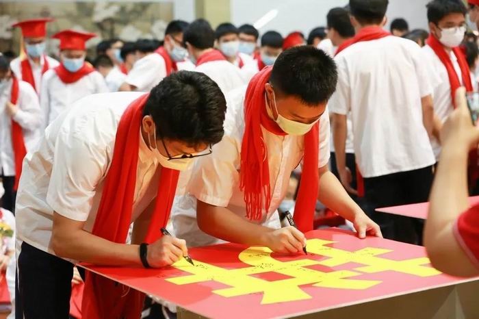 奮斗的青春才是最美的青春,青春是用來拼搏的,唯有拼搏才能顯現青春的價值和意義。全體同學現場在“拼”字旗上鄭重地寫下自己的名字,給自己許下最誠的諾言。