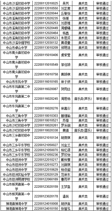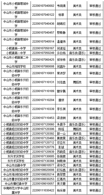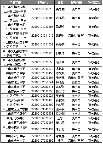 根據(jù)《2022年中山市東升高級(jí)中學(xué)藝術(shù)生招生方案》相關(guān)規(guī)定,審核報(bào)考我校藝術(shù)生的考生的資格。合格名單公示如下: