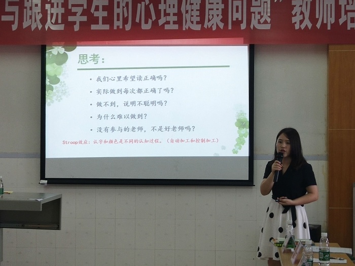 第一部分由西南大學(xué)心理學(xué)碩士、朗晴小學(xué)專(zhuān)職心理教師、朗晴小學(xué)德育主任雷小云老師作《如何發(fā)現(xiàn)與跟進(jìn)學(xué)生心理健康問(wèn)題》專(zhuān)題講座,雷老師通過(guò)分析“2019年朗晴小學(xué)學(xué)生心理異?!钡臄?shù)據(jù),得出學(xué)生心理異??赡軡摲谏磉叺慕Y(jié)論,教師需要有一雙發(fā)現(xiàn)學(xué)生心理異常的眼睛,做到及時(shí)發(fā)現(xiàn)問(wèn)題及時(shí)處理。教師們還學(xué)習(xí)了“小學(xué)生常見(jiàn)的心理行為問(wèn)題”、“小學(xué)生心理行為問(wèn)題的成因”和“應(yīng)對(duì)小學(xué)生心理行為問(wèn)題的策略”,這為教師在處理小學(xué)生心理異常時(shí)提供良好的理論依據(jù)與應(yīng)對(duì)技巧。