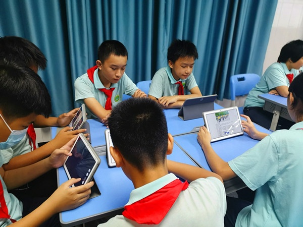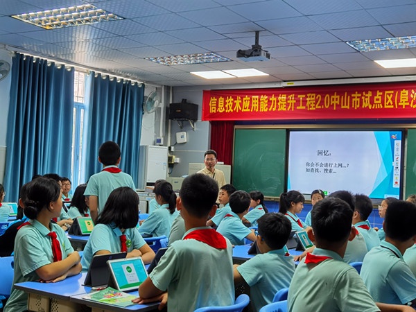 第一環(huán)節(jié)由阜沙鎮(zhèn)科學學科帶頭人馬成海副校長上展示課,課題是六年級科學《網(wǎng)上學習——我的綠色生活》。馬校長利用信息技術,指導學生通過平板機進行網(wǎng)上學習,從選定主題、搜集信息、上傳資料、交流學習四個環(huán)節(jié)進行教學。他指導學生如何選定主題,如何圍繞主題利用網(wǎng)絡搜集信息、處理信息,并在此過程中了解為什么要進行垃圾分類,減少廢棄物,重復利用物品以及循環(huán)再造可回收物等知識;同時初步認識一次性用品對環(huán)境的危害,重點引導學生如何去表達交流分享,并在此過程中懂得人與環(huán)境密切相關,進而在日常生活中踐行綠色環(huán)保的生活理念。整節(jié)課馬校長把信息技術與教學深度融合,培養(yǎng)學生借助網(wǎng)絡學習的方法和習慣。