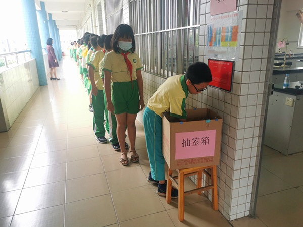 此次科學(xué)實(shí)驗(yàn)操作考核的內(nèi)容是:“用天平測量液體的質(zhì)量”“電路的連接”“讓氣球漲起來”“紙橋承重實(shí)驗(yàn)”“測量液體的溫度”“顯微鏡的使用”六個(gè)實(shí)驗(yàn)。阜沙中心小學(xué)科學(xué)組精心準(zhǔn)備,考試流程完全按照中山市科學(xué)實(shí)驗(yàn)考核流程進(jìn)行,把五年級同學(xué)分成每組12人,兩組為一批,每批考生先是抽簽定題,然后根據(jù)選題進(jìn)入考場對號入座,由監(jiān)考老師宣布考核守則,考生單獨(dú)操作完成實(shí)驗(yàn),根據(jù)實(shí)驗(yàn)結(jié)果寫上實(shí)驗(yàn)結(jié)論。本次考核也是阜沙鎮(zhèn)教體中心對學(xué)校的抽考,聘任初中理科老師監(jiān)考,按評分標(biāo)準(zhǔn)現(xiàn)場打分,并增加了科學(xué)理論知識考核,檢查考生科學(xué)知識的掌握情況。