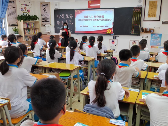 在第35個(gè)國(guó)際禁毒日來(lái)臨之際,6月20日,港口鎮(zhèn)群眾小學(xué)開(kāi)展了“珍愛(ài)生命,遠(yuǎn)離毒品”禁毒專題系列活動(dòng)。