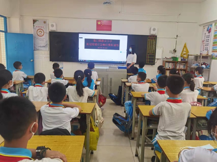 學(xué)校結(jié)合新冠肺炎疫情應(yīng)急響應(yīng)流程,模擬了“學(xué)校接到衛(wèi)生健康部門通知學(xué)校人員是新冠肺炎的密切接觸者”的場(chǎng)景和“學(xué)生在教室上課時(shí)出現(xiàn)發(fā)熱”的情景。